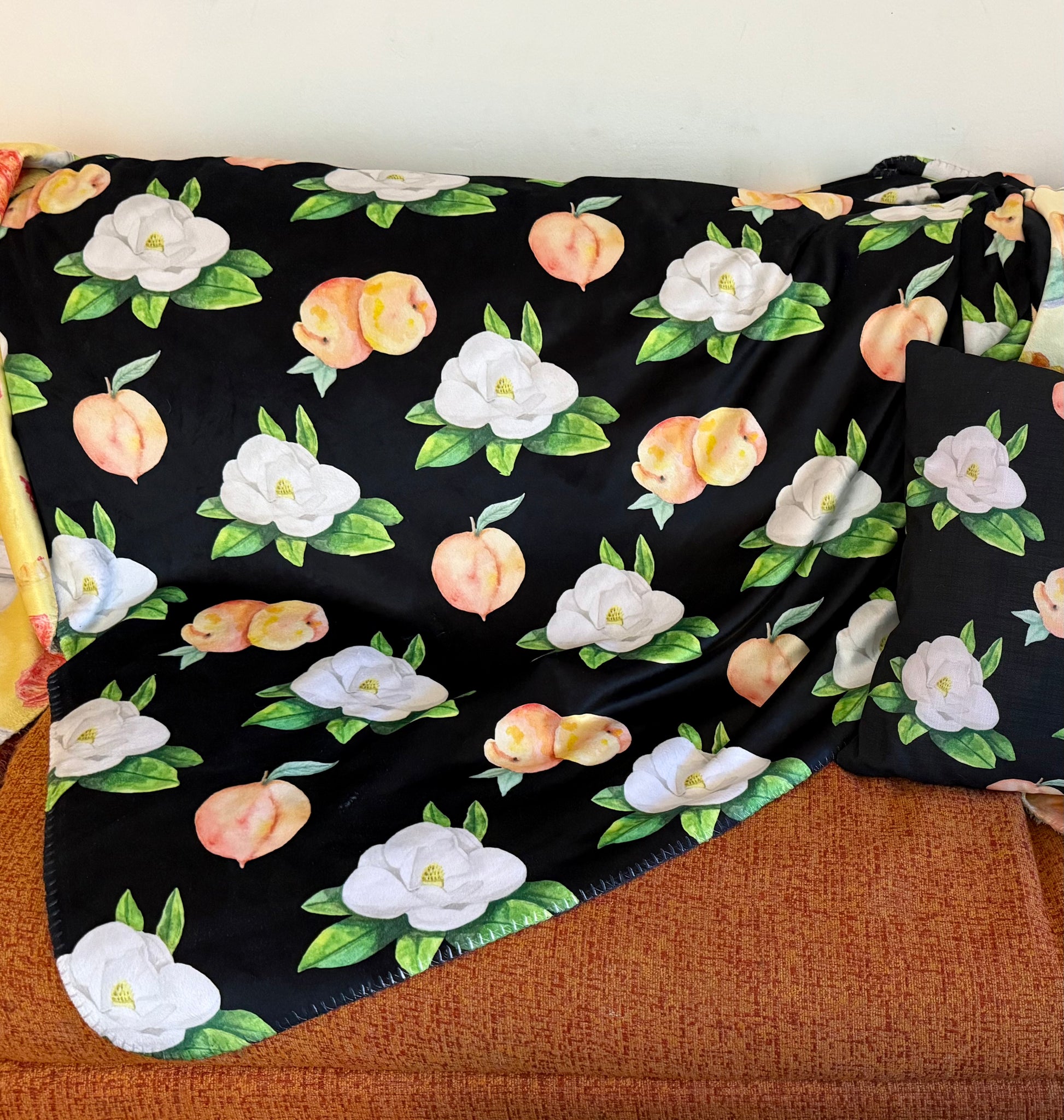 This classy Magnolia and Peach Sherpa Blanket serves Southern Comfort combines the ancient beauty of a Magnolia with the Southern Charm of a Plump Peach. Velvety feel with exceptional softness, making it the ultimate comfort companion. This design is comprised of Watercolor Paintings done by ME. Perfect for daily use while lounging on the couch, snuggling up on chilly evenings, or styling your room—this blanket offers unmatched coziness and warmth.